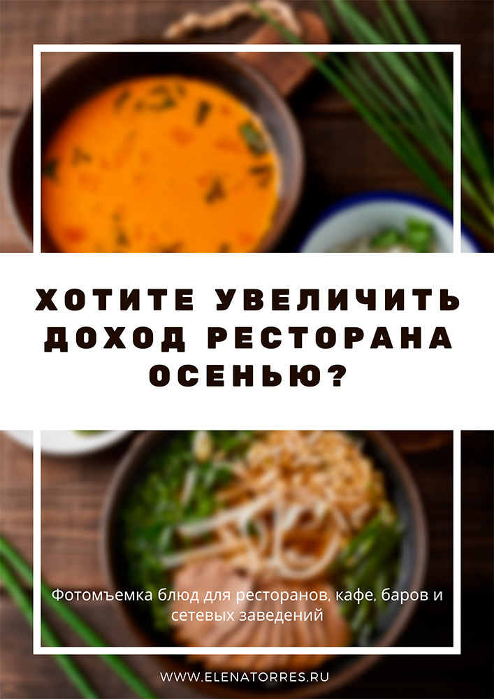 В первой половине осени действует Акция - тестовая съемка на 5 любых ваших блюд или напитков за 2990 рублей!