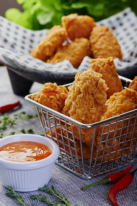 Мы фотографировали куриное филе, ножки и стрипсы и панировке от компании KERRY. Задача была показать разные виды панировки, как она аппетитно смотрится, какую текстуру создает и что в целом из нее может получиться. А получаются вкусные хрустящие куриные кусочки в той или иной панировке.Панировок было несколько видов: и пикантная, и с кукурузой, и с зеленью, и темпура, и классическая.